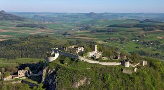 Wer an einem schönen Tag bei einem Ausflug den Berg erklommen hat, wird mit einem imposanten Ausblick über den Hegau bis hin zum Bodensee und den Alpen belohnt. Mit dem Fahrrad kann man bis zum Informationszentrum fahren und dann zur Festungsruine hinaufwandern.